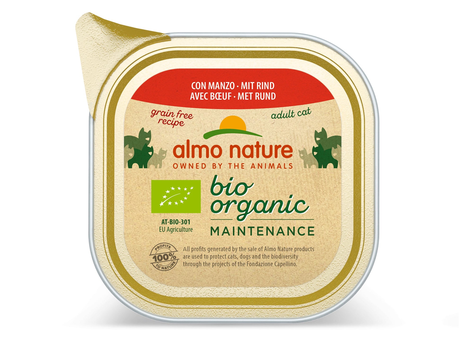 Almo Nature Bio-organic Maintenance Wet Cat Food -? Beef is the pet food, produced with natural ingredients, that returns 100% of its profits to cats, dogs and biodiversity through the projects of the Fondazione Capellino.