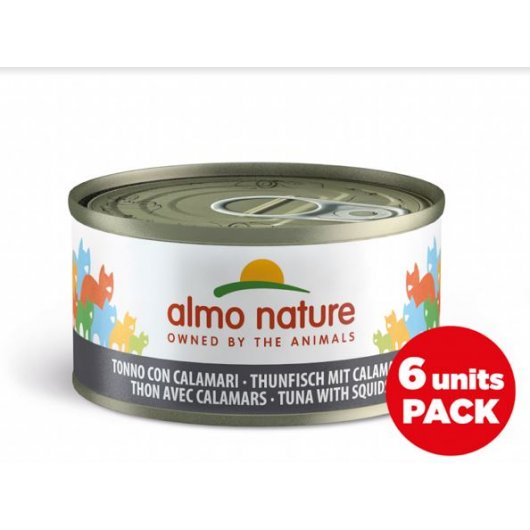 Almo Nature Mega Pack Wet Food Tins for Cats Tuna with Squids 6 x 70g