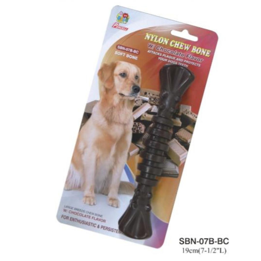 Percell 7.5 Nylon Dog Chew Spiral Bone,?Chocolate?Scent is ideal for your large powerful dogs. Its strong durable material is designed to withstand vigorous play. Great for playing fetch, pulling war or just chewing. By chewing on this?, it potentially contribute to better dental health of your dogs.