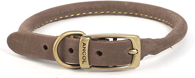 Ancol Timberwolf Round Leather Collar for Dogs - Sable -39-48cm - Size 5